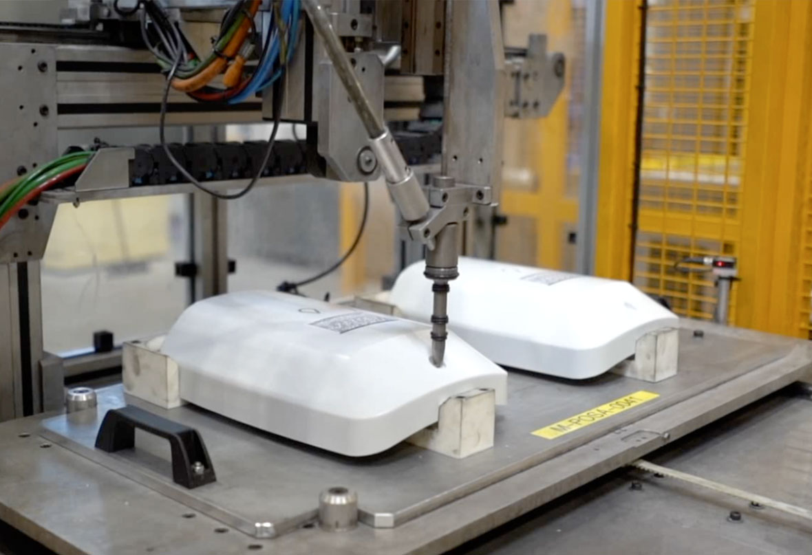 L’ajout d’un joint en surmoulage nous permet véritablement de lier 2 matériaux. Cela nous permet d’apporter des fonctions d’étanchéité et de technicité supplémentaire. La mise en place d’inserts métalliques ou plastiques (en automatique ou en manuel) permet de réaliser le surmoulage de la pièce et la rendre parfaitement homogène.